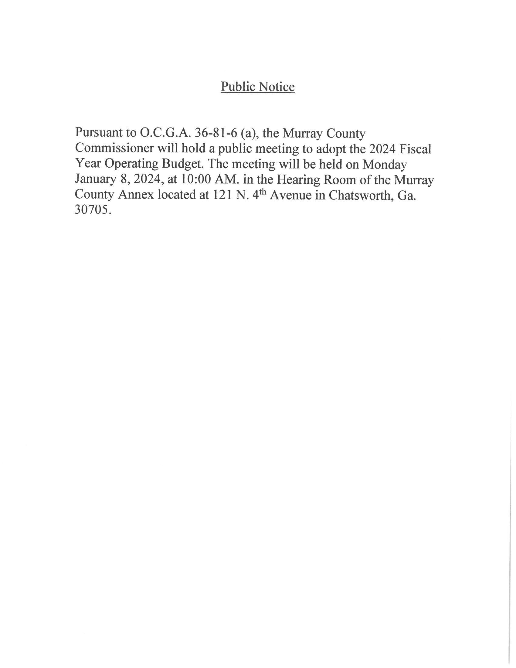 Murray County Commissioner Agendas - Agenda - Budget Finalization (2024 FY)