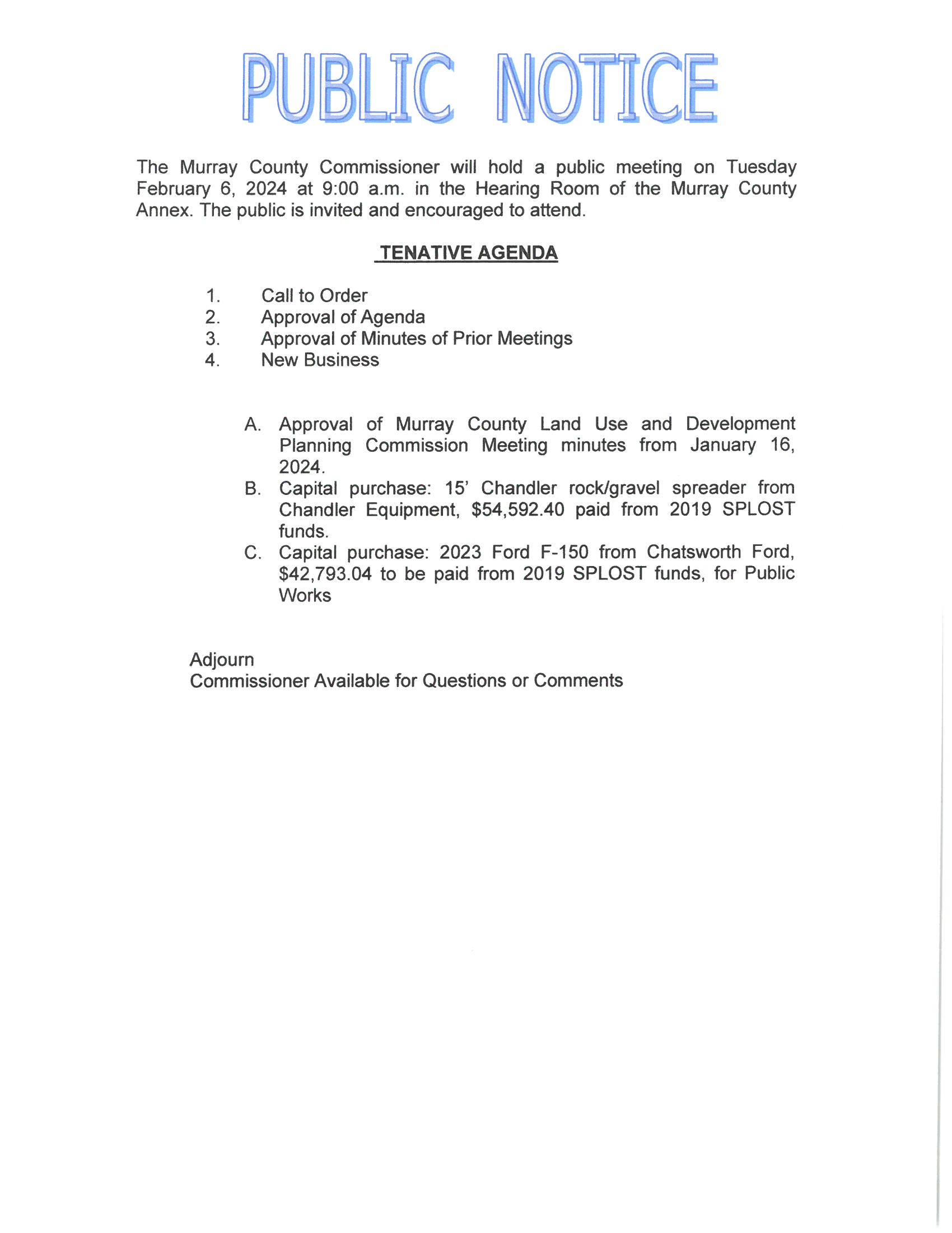 Murray County Commissioner Agendas - Agenda - February 6, 2024